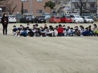 校庭にモンシロチョウを放すと子どもたちの周りを飛び回りました。