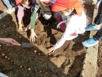 2年生が、学級園などに植えたトマトやナスやオクラなどの野菜の成長を写真に撮って記録していました。