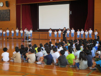 最後に今週土曜日に行われるタグラグビーの壮行会が行われました。東雲小学校としては最後の大会になります。みんなで拍手のエールを送りました。