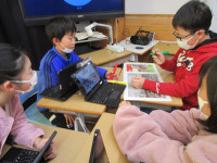 2024年4月15日 16時44分今日の国語の授業「かえるのぴょん」では、同じグループの人と読み方を工夫したり、動作を入れたりして発表しました。どのグループも、かえるが跳ぶ様子を表現することができました。